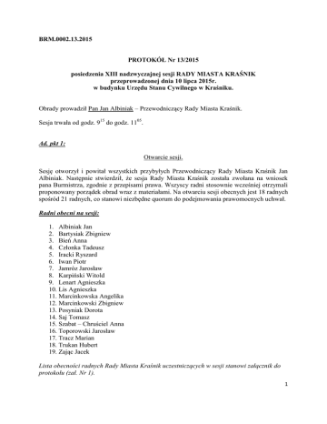 BRM.0002.13.2015 PROTOKÓŁ Nr 13/2015 posiedzenia XIII