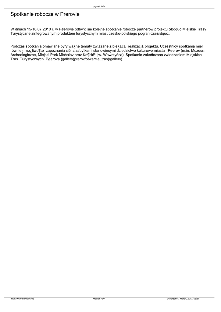W dniach 15-16.07.2010 r. w Pøerovie odby³o siê kolejne spotkanie robocze partnerów projektu „Miejskie Trasy