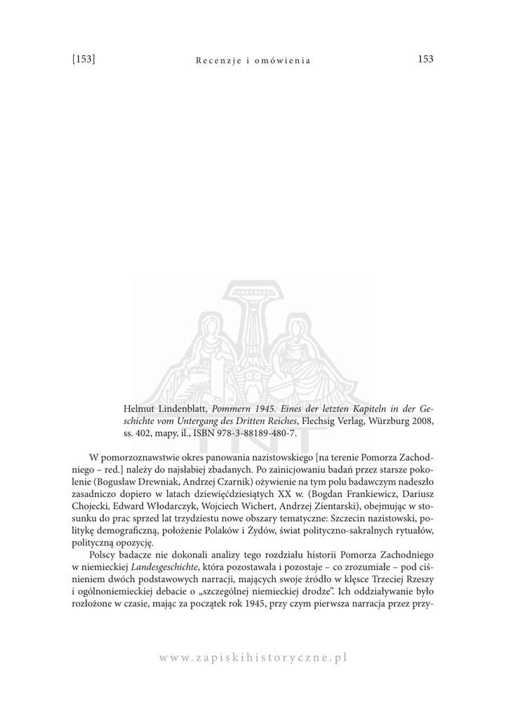 [153] Recenzje i omówienia 153 Helmut Lindenblatt, Pommern 1945. Eines der letzten Kapiteln in der Geschichte vom Untergang des Dritten Reiches, Flechsig Verlag, Würzburg 2008, ss. 402, mapy, il., ISBN 978-3-88189-480-7. W pomorzoznawstwie okres panowania nazistowskiego [na terenie Pomorza Zachodniego – red.] należy do najsłabiej zbadanych. Po zainicjowaniu badań przez starsze pokolenie (Bogusław Drewniak, Andrzej Czarnik) ożywienie na tym polu badawczym nadeszło zasadniczo dopiero w latach dziewięćdziesiątych XX w. (Bogdan Frankiewicz, Dariusz Chojecki, Edward Włodarczyk, Wojciech Wichert, Andrzej Zientarski), obejmując w stosunku do prac sprzed lat trzydziestu nowe obszary tematyczne: Szczecin nazistowski, politykę demograficzną, położenie Polaków i Żydów, świat polityczno-sakralnych rytuałów, polityczną opozycję. Polscy badacze nie dokonali analizy tego rozdziału historii Pomorza Zachodniego w niemieckiej Landesgeschichte, która pozostawała i pozostaje – co zrozumiałe – pod ciśnieniem dwóch podstawowych narracji, mających swoje źródło w klęsce Trzeciej Rzeszy i ogólnoniemieckiej debacie o „szczególnej niemieckiej drodze”. Ich oddziaływanie było rozłożone w czasie, mając za początek rok 1945, przy czym pierwsza narracja przez przy- w w w. z a p i s k i h i s t o r y c z n e . p l 154 Recenzje i omówienia [154] najmniej dwa pokolenia przemożnie ciążyła nad pisarstwem niemieckim w Republice Federalnej, dominując w kręgach tworzących je konserwatywnych historyków i ziomkostw. Głównym elementem tej narracji była i jest historia upadku tej części niemieckiego Wschodu, nadto gwałtowność zagłady wielowiekowej niemieckiej kultury i cywilizacji wraz z towarzyszącymi temu upadkowi traumatycznymi skutkami. Radziecko-polska ofensywa i często heroiczny opór Wehrmachtu, ekscesy żołnierzy radzieckich przyniosły ogromne zniszczenia substancji materialnej, zniszczenie tysięcy dzieł kultury i sztuki, cierpienia cywilnych Niemców. Przyniosła owa ofensywa też wyzwolenie tysiącom Polaków – jeńcom i robotnikom przymusowym, jak również nielicznym ocalałym z Zagłady, wreszcie niemieckim antyfaszystom. Na tym obszarze w recenzowanej książce króluje opis faktograficzny. Druga narracja, podporządkowana ocenom wartościującym i szerszej refleksji nad drogami i bezdrożami niemieckich dziejów XX w., ma znacznie krótszą metrykę. Jest częścią wielkiej narodowej, ciągle trwającej dyskusji o przyczynach ogromu niemieckiego zła (z Holocaustem na czele), jakie naród niemiecki wyrządził Europie w pierwszej połowie XX w., dyskusji sięgającej korzeniami Der Irrweg einer Nation (Mexiko 1945) Alexandra Abuscha i „niemieckiej katastrofy” Friedricha Meineckego (Die deutsche Katastrophe. Betrachtungen und Erinnerungen, Wiesbaden 1946), poprzez tzw. kontrowersje Fritza Fischera, tzw. spór historyków i spór o miejsce Hitlera oraz wielkich ideologów nazistowskiego imperium w jego historii. Ta narracja, sprowadzona w aspekcie moralnym do bezmiaru niemieckiej winy, bardzo długo nie mogła znaleźć dojścia do Landesgeschichte dawnego niemieckiego Wschodu, której koryfeusze długo ignorowali tak narastające bogactwo faktografii, jak coraz to nowe metodologiczne modele wyjaśniania – pozostając na poziomie tylko sfery moralnej – fanatycznego poparcia wielkiego narodu dla zbrodniczego charyzmatyka, który z niezwykłym wyrafinowaniem unurzał większą część tego narodu w monstrualnej zbrodni. W Landesgeschichte byłej NRD interesująca merytorycznie moralna refleksja nad niemiecką winą podporządkowana była tezie o antyfaszystowskim fundamencie tego państwa, w byłej RFN dominowało eksponowanie skali niemieckich cierpień ludności cywilnej. Dopiero ostatnie lata i pojawienie się między Gryfią/Greifswaldem i Schwerinem nowego pokolenia przyniosło na łamach „Baltische Studien” i „Zeitgeschichte regional” nareszcie serię artykułów o wielorakich aspektach zbrodniczych rządów NSDAP i Gestapo w prowincji Pomorze, wspieranych przez oddanych nazizmowi uczonych (eutanazja i sterylizacja!). Wprawdzie owo młode pokolenie nadal hołduje zasadzie Polonica non leguntur, jednak systematycznie odsłania bezmiar zbrodni Trzeciej Rzeszy na interesującym nas obszarze. Ubolewać można po raz kolejny nad brakiem jakiegokolwiek poważnego współczesnego dialogu między polską i niemiecką młodzieżą zajmującą się problematyką pomorzoznawczą, o czym piszę w innym miejscu, korzystając z zaproszenia Huberta Orłowskiego do jego jakże doniosłej inicjatywy, która znalazła wyraz w zbiorowej publikacji Moje Niemcy – moi Niemcy1. Na tle w sumie pozytywnych perspektyw polsko-niemieckiego dialogu opisywana książka jest swoistym déjà vu doby powojennej. Praca Helmuta Lindenblatta (wydanie pierwsze ukazało się w 1984 r. w Verlag Gerhard Rautenberg) w sferze intencji politycznych jest hołdem złożonym przede wszystkim heroizmowi żołnierzy Wehrmachtu, cierpieniom 1 Moje Niemcy – moi Niemcy. Odpominania polskie, red. H. Orłowski, Poznań 2009; por. W. Stępiński, „Nasi” Niemcy a „długa pamięć historyczna” polskiej młodzieży niemcoznawczej, [in:] ibid., s. 199–211. w w w. z a p i s k i h i s t o r y c z n e . p l [155] Recenzje i omówienia 155 setek tysięcy cywilnych Niemców i zagładzie setek miast i miasteczek. W tle odczytujemy walory strategiczno-operacyjnych działań dowództwa Armii Radzieckiej i 1. Armii Wojska Polskiego w tej części Trzeciej Rzeszy. Polskiemu historykowi przypomina to o walkach polskich żołnierzy o „wyzwolenie” Pomorza Zachodniego, uświadamia z pozycji niemieckich znaczenie wielkości heroizmu i ofiary żołnierza Wojska Polskiego, wnoszącego swój udział w kruszenie stale groźnej do późnego lata 1944 r. potęgi Wehrmachtu, jak też wagę tej ofiary krwi dla mitu „powrotu” Polski na „piastowskie ziemie odzyskane”. Praca