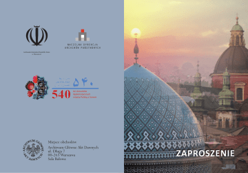 Ambasada Islamskiej Republiki Iranu w Warszawie lat stosunków dyplomatycznych między Polską a Iranem Miejsce obchodów Archiwum Główne Akt Dawnych ul. Długa 7 00-263 Warszawa Sala Balowa ZAPROSZENIE Jego Ekscelencja Ambasador Islamskiej Republiki Iranu oraz Naczelny Dyrektor Archiwów Państwowych serdecznie zapraszają na obchody 540 rocznicy nawiązania polsko-irańskich kontaktów dyplomatycznych Wtorek, 24 lutego 2015 r. godz. 17.00 Uroczysta inauguracja obchodów J. E. Ramin Mehmanparast Ambasador Islamskiej Republiki Iranu Pan dr hab. Władysław Stępniak J. E. Morteza Damanpak Jami Pan Tomasz Szeratics Naczelny Dyrektor Archiwów Państwowych przewodniczący delegacji irańskiej dyr. Departamentu Dyplomacji Publicznej i Kulturalnej (przedstawiciel Ministerstwa Spraw Zagranicznych) Środa, 25 lutego 2015 r. godz. 11.00 Konferencja naukowa poświęcona wzajemnym relacjom Otwarcie konferencji Pan dr hab. Władysław Stępniak Naczelny Dyrektor Archiwów Państwowych Relacje polityczne i kontakty dyplomatyczne J. E. Morteza Damanpak Jami Pan Said Zahedi Pan Andrzej Krzysztof Kunert Pan Piotr Puchta dyr. Departamentu Afryki i Bliskiego Wschodu (przedstawiciel Ministerstwa Spraw Zagranicznych) Pan Władysław Czapski przedstawiciel Związku Dzieci z Isfahanu Prezentacja książki In the Archive of Memory. The Fate of Poles and Iranians in the Second World War Pani prof. dr hab. Jolanta Sierakowska-Dyndo Uniwersytet Warszawski Podpisanie memorandum o współpracy archiwalnej Otwarcie wystawy archiwalnej 540 lat wzajemnych relacji w dokumentach archiwalnych: „Polska – Iran. Wczoraj i dziś” Poczęstunek Wiceprezes Ośrodka Studiów Międzynarodowych i Edukacji (Ministerstwo Spraw Zagranicznych) Zastępca Naczelnika Wydziału Analizy Dokumentów (Ministerstwo Spraw Zagranicznych) Sekretarz Rady Ochrony Pamięci Walk i Męczeństwa Stosunki w dziedzinie kultury i sztuki Pan prof. dr hab. Tadeusz Majda Pani Feren Zahedi Pani Dorota Latour Pan Khosro Sinaei UW, Wydział Orientalistyczny wykładowca akademicki reżyser filmowy reżyser filmowy godz. 14.00 Podsumowanie konferencji Projekcja filmu Andrzeja Czuldy „Perskie Ocalenie”