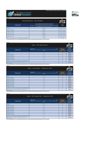 Cennik podstawowy Global System usług firmy UPS na rok 2016