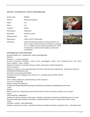 SW-16 - Włochy: śladami św. Karola Boromeusza 10dni autobusem