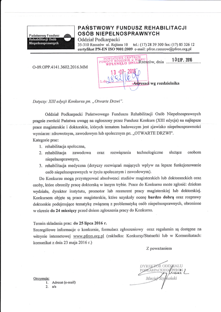 Oddzial Poclkalpłcki l)alistlvorvego Fundrrszrr Rehabilitacji Osób Niepełnosprawnych