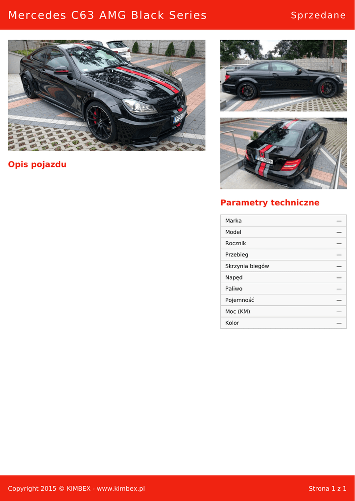 Mercedes C63 AMG Black Series Sprzedane Opis pojazdu Parametry techniczne Copyright 2015 © KIMBEX - www.kimbex.pl Marka — Model — Rocznik — Przebieg — Skrzynia biegów — Napęd — Paliwo — Pojemność — Moc (KM) — Kolor — Strona 1 z 1