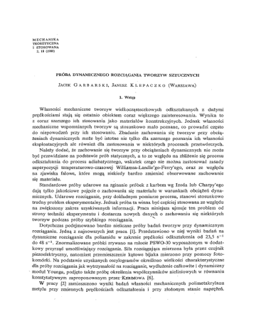 2. W. DĘ BSKI; Wł asnoś ci mechaniczne PMMA przy zmiennych szybkoś ciach odkształ cania i przy zł oż onym