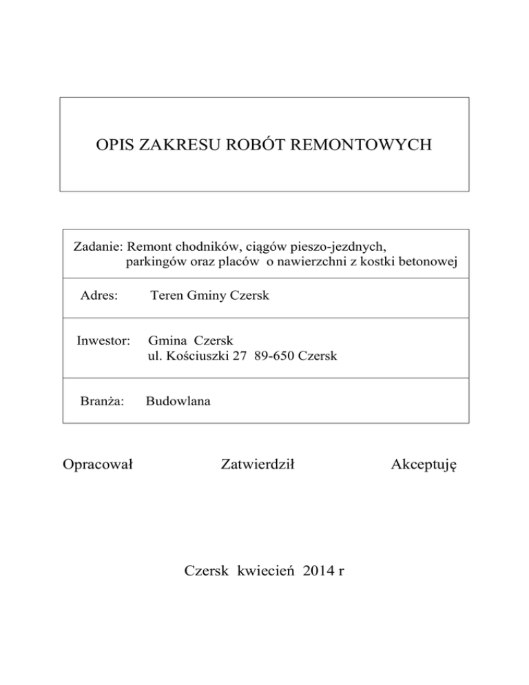 opis zakresu robót.