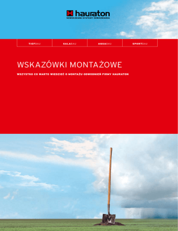 T i e fb au ga l ab au aq ua b au WSKAZÓWKI MONTAŻOWE WSZYSTKO CO WARTO WIEDZIEĆ O MONTAŻU ODWODNIEŃ FIRMY HAURATON s p o r tb au T i e fb au ga l ab au aq ua b au s p o r tb au WSZYSTKO CO WARTO WIEDZIEĆ O MONTAŻU PRODUKTÓW FIRMY HAURATON SZCZEGÓŁOWE WSKAZÓWKI MONTAŻowe DLA RÓŻNYCH KLAS OBCIĄŻENIA I DLA RÓŻNYCH OBSZARÓW ZASTOSOWAŃ. Każdy element budowlany spełnia w sposób niezawodny swoje zadanie i funkcje tylko przy odpowiednim jego zastosowaniu i fachowym montażu. Tak jest również w przypadku produktów firmy Hauraton. W celu osiągnięcia jak najlepszego efektu wspomagamy wykonawców naszym fachowym doradztwem. Szczegółowe wskazówki montażowe i specyfikacje zawierają wszystkie wiadomości o sposobach montażu dla różnych klas obciążenia i różnych obszarów zastosowań. W przypadku wystąpienia na budowie szczególnych warunków zabudowy nasz kompetentny pracownik chętnie pojawi się u Państwa w celu omówienia wszystkich punktów i zaproponowania właściwych rozwiązań. Wskazówki montażowe firmy HAURATON – aby również montaż przebiegał płynnie. 2 TiefBau STABILNE KORYTKA ODWADNIAJĄCE DO STOSOWANIA NA DROGACH I OBSZARACH PRZEMYSŁOWYCH 8 FASERFIX®SUPER KS / FASERFIX®SUPER 8 FASERFIX®point 23 FASERFIX®big 26 FASERFIX®traffic 30 RecyFIX®Hicap 36 GALABAU RÓŻNORODNA OFERTA ODWODNIENIA do stosowania na obszarach użuteczności publicznej i terenach przydomowych 40 recyFIX®plus/recyFIX®standard 40 recyFIX®TOP 47 KORYTKA SZCZELINOWE 48 faserFIX®standard 52 dachfix® 56 RecyFIX®green super 58 RecyFIX®green standard 60 SPORTBAU kompleksowy program do odwadniania wszelkiego rodzaju obiektów sportowych 62 POZOSTAŁE WSKAZÓWKI NA ZAPYTANIE WSKAZÓWKA: W POSZCZEGÓLNYCH ROZDZIAŁACH PRZYKŁADY ZABUDOWY SĄ PRZEDSTAWIONE NARASTAJĄCO WG KLAS OBCIĄŻENIA 3 KLASY OBCIĄŻEŃ I PRZYKŁADY ZASTOSOWAŃ ZGODNIE Z NORMĄ PN EN 1433 Klasa A 15, obciążenie 15 kN Przykłady: drogi dla pieszych, ścieżki rowerowe, wjazdy do garaży, podjazdy przydomowe. Klasa B 125, obciążenie 125 kN Przykłady: drogi dla samochodów osobowych, prywatne parkingi, strefy ruchu pieszego. Klasa C 250, obciążenie 250 kN Przykłady: stacje serwisowe dla samochodów, parkingi, deptaki (chodniki). Klasa D 400, obciążenie 400 kN Przykłady: drogi szybkiego ruchu, podjazdy do stacji serwisowych, obszary użytku publicznego. Klasa E 600, obciążenie 600 kN Przykłady: obszary przemysłowe, strefy ruchu wózków widłowych, porty. Klasa F 900, obciążenie 900 kN Przykłady: pasy startowe na lotniskach, parkingi i stacje serwisowe dla samochodów ciężarowych (TiR), bazy wojskowe. W PRZYPADKU WĄTPLIWOŚCI NALEŻY WYBRAĆ WYŻSZĄ KALSĘ OBCIĄŻENIA CERTYFIKAT JAKOŚCI WEDŁUG NORMY DIN EN ISO 9001:2000, NORMY, APROBATY Już w roku 1993 firma Hauraton, jako jedna z pierwszych firm z branży budowlanej, otrzymała certyfikat jakości według DIN EN ISO 9001. Do dnia dzisiejszego standardy jakościowe są stale udoskonalane i poddawane regularnej certyfikacji. Wymagania jakościowe normy DIN EN ISO 9001:2000 odnoszą się nie tylko do produktów, ale również do całego przedsiębiorstwa, w tym rozwoju, konstrukcji, montażu i obsługi klienta. Dzięki zarządzaniu jakością zgodnie z DIN EN ISO 9001:2000 firma Hauraton gwarantuje swoim klientom jako partner maksymalne bezpieczeństwo. Produkty firmy Hauraton spełniają nie tylko wymogi normy PN EN 1433, ale również znacznie bardziej rygorystycznej niemieckiej normy DIN V 19580. Certyfikaty CE, kontrola zewnętrzna oraz deklaracje zgodności gwarantują projektantom najwyższy standard techniczny. Odporność na mróz i sól, odporność na zginanie, szczelność i wysoka wytrzymałoś konstrukcji na obciążenia gwarantują wieloletnią funkcjonalność korytek. Korytka posiadają również wydaną przez Instytut Badawczy Dróg i Mostów Aprobatę Techniczną oraz pozytywną opinię instytutu PZH. W przypadku szczególnych zastosowań w obszarach przemysłowych, w których magazynowane, rozlewane, lub przelewane są substancje niebezpieczne dla wody, według ustawy o gospodarce wodnej, jak np. rozlewnie, korytka posiadają ogólne dopuszczenie DIBt. 4 Dopuszczenie to obejmuje następujące systemy: Korytka FASERFIX SUPER, dopuszczenie nr Z-74.4-68 Korytka FASERFIX BIG SL, dopuszczenie nr Z-74.4-67 Korytka FASERFIX BIG BL, dopuszczenie nr Z-74.4-66 RODZAJE SPADKÓW Ciąg odwodnieniowy bez spadku. Odpływ dzięki istniejącemu spadkowi terenu. 01 01 01 01 01 01 01 01 01 01 01 01 01 01 01 01 01 01 01 01 01 01 01 01 01 ścianka czołowa typ 01 studzienka Ciąg odwodnieniowy ze spadkiem. Odpływ dzięki spadkowi wyprofilowanemu w korytkach.* 1 2 3 4 5 6 7 8 9 10 11 12 13 14 15 16 17 18 19 20 17 18 19 20 ścianka czołowa typ 020 z króćcem z tworzywa sztucznego ścianka czołowa typ 01 Ciąg odwodnieniowy ze spadkiem; dobrano korytka typ 10-20.* Dzięki większej głębokości i retencji korytek uzyskano dużą przepustowość. 1 2 3 4 5 6 7 8 9 10 11 12 13 14 ścianka czołowa typ 01 15 16 ścianka czołowa typ 020 fabrycznie zamontowane odejście pionowe Ciąg odwodnieniowy ze spadkiem; dobrano korytka typ 1-20.* Ciąg przedłużono poprzez zastosowanie korytek bez spadku po 1 szt.: typ 05, 010, 015 i 020. 1 2 3 4 05 5 6 7 8 9 010 10 11 12 13 14 015 15 16 17 18 19 020 20 ścianka czołowa typ 01 studzienka Ciąg odwodnieniowy ze spadkiem.* Znaczną długość ciągu uzyskano poprzez ułożenie 2 ciągów z przeciwspadkiem. Maks. długość odcinka ze spadkiem: 40 m. 20 19 18 17 16 15 14 3 2 1 1 2 3 14 15 16 17 18 19 20 spadek łamany studzienka studzienka Ciąg odwodnieniowy bez spadku. Ciąg kaskadowy. 01 01 01 01 ścianka czołowa typ 01 05 05 05 05 010 010 010 010 015 015 015 015 020 020 020 020 ścianka czołowa typ 020 z króćcem z tworzywa sztucznego Podłączenie ciągu korytek do kanalizacji można wykonać poprzez studzienkę lub ściankę czołową z króćcem z tworzywa sztucznego. *Standardowe