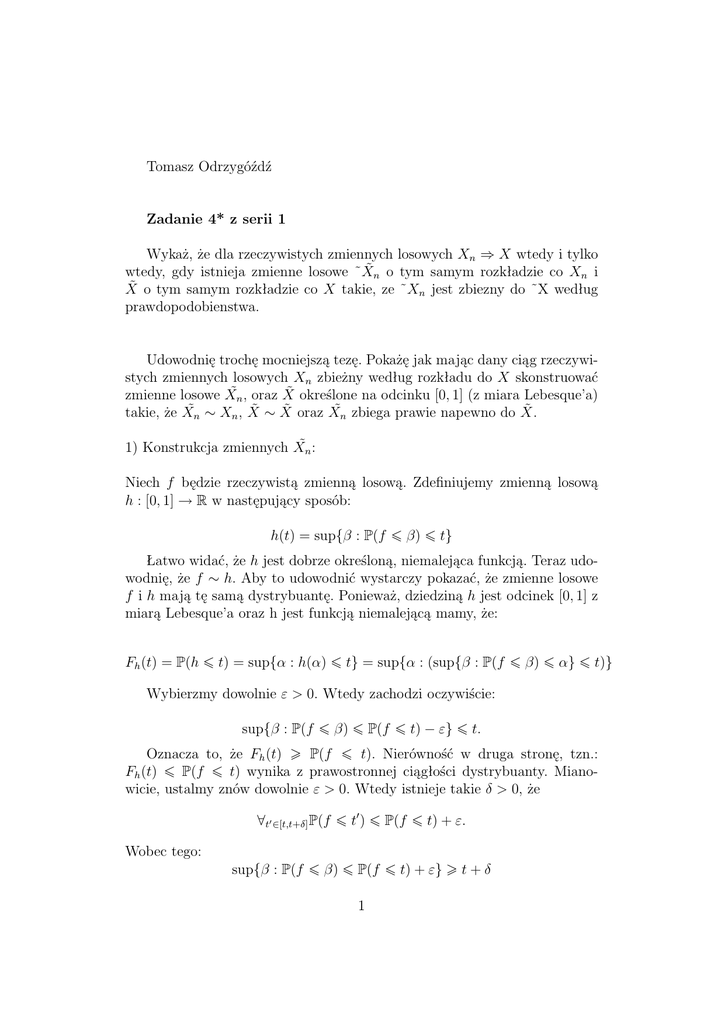 Wobec tego dystrybuanty zmiennych f i h są równe, czyli f ∼ h.