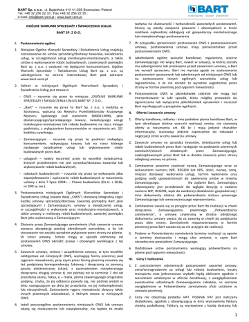 OGÓLNE WARUNKI SPRZEDAŻY I ŚWIADCZENIA USŁUG BART