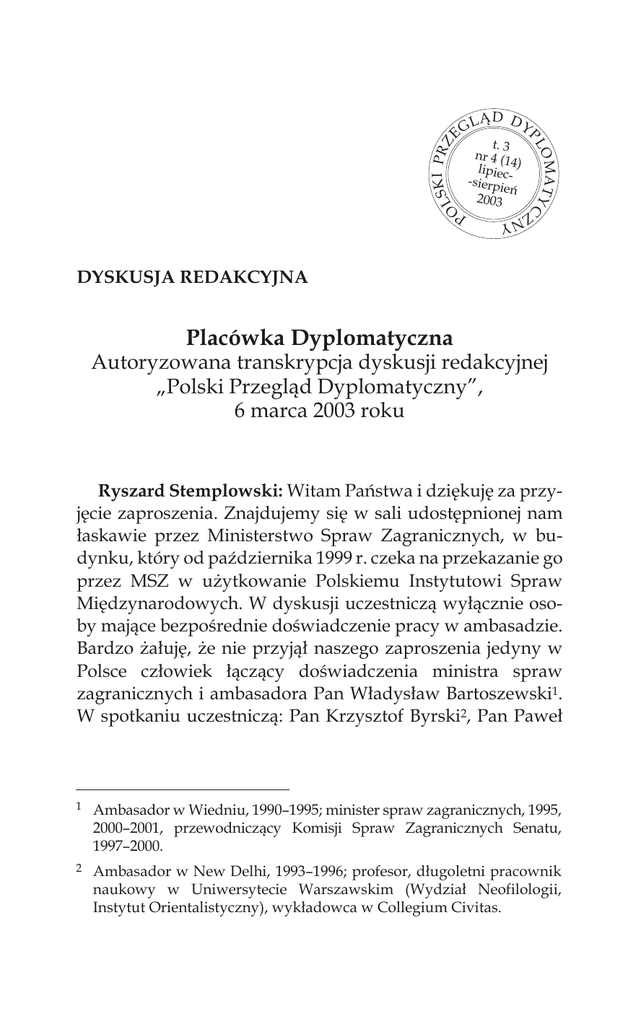 Dyskusja redakcyjna - "Placówka dyplomatyczna"