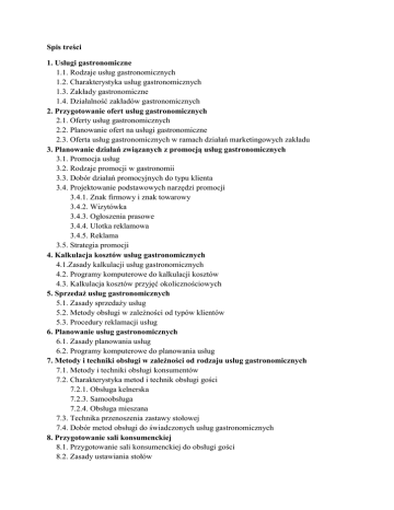 Spis treści 1. Usługi gastronomiczne 1.1. Rodzaje usług