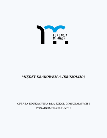 MIĘDZY KRAKOWEM A JEROZOLIMĄ OFERTA EDUKACYJNA DLA SZKÓŁ GIMNZJALNYCH I PONADGIMNAZJALNYCH Holokaust: od idei do zbrodni Holokaust, czyli zagłada prawie 6 milionów Żydów w czasie II wojny światowej jest zjawiskiem bezprecedensowym w dziejach narodu żydowskiego. W trakcie lekcji zatytułowanej „Holocaust – od idei do zbrodni” przedstawiony zostanie rys historyczny Zagłady – od narodzin antysemityzmu w XIX wieku, aż po ludobójstwo dokonane na Żydach w czasie II wojny światowej. Lekcja ma za zadanie pokazać, jak stereotypy i niechęć może przerodzić się w ludobójstwo milionów ludzi. W trakcie zajęć prezentowane są fragmenty filmów oraz zdjęcia. Holokaust w popkulturze Na temat Holokaustu powiedziano i napisano już wiele. Z tematyką Zagłady próbuje zmierzyć się nie tylko historia, ale i sztuka. Dlatego też druga lekcja dotycząca Szoa prezentuje ogólną tendencje do zmian w przedstawianiu Zagłady w literaturze, sztuce i filmie. W trakcie lekcji pokazywane są wybrane wydawnictwa (ze szczególnym uwzględnieniem komiksów) oraz najbardziej kontrowersyjne prace artystyczne nawiązujące do Holokaustu. Autorki lekcji prezentują także kwestie komercjalizacji miejsc pamięci oraz wykorzystywania haseł i symboliki związanej z Zagładą w reklamie. Żydowski Kraków. Historia, kultura, współczesność Bez wychodzenia z sali lekcyjnej, uczniowie będą mieli okazję odbyć wirtualny spacer po wszystkich ciekawych, nieodkrytych, a często nawet zapomnianych zakątkach m.in. krakowskiego Kazimierza, dawnej dzielnicy żydowskiej. Młodzież pozna podstawowe pojęcia związane z religią żydowską, dowie się ile synagog funkcjonuje w ich mieście i jaką rolę spełniały one kiedyś, a jaką pełnią obecnie; jacy ludzie tworzyli historię, kulturę i przestrzeń tego miejsca. Będzie to również okazja do poruszenia tematów trudnych, ale i zarazem niezwykle ważnych, w które wpisuje się cały okres II wojny światowej. Reasumując, lekcja ta stanowi połączenie trzech przestrzeni czasowych: przeszłości teraźniejszości i przyszłości dzielnicy Kazimierz. W związku z tym uczniowie mają okazję poznać współczesne życie żydowskie: działalność Centrum Społeczności Żydowskiej (JCC), Muzeum Galicja czy Stowarzyszenia Festiwalu Kultury Żydowskiej. Dzięki wskazaniu na tego typu instytucje, przed uczniami otwiera się ciekawość poznania tego miejsca osobiście, docenienia jego walorów kulturowych i korzyści płynących z jego prawidłowego funkcjonowania dla miasta i całej społeczności Krakowa. Żydzi w okupowanym Krakowie Lekcja przybliża młodzieży losy krakowskiej społeczności żydowskiej w latach 1939 – 1945. Uczniowie poznadzą najważniejsze postaci, instytucje i wydarzenia. Udadzą się w wirtualną wycieczkę po dawnym getcie krakowskim i odkryją, gdzie dzisiaj można szukać śladów dawnej „żydowskiej dzielnicy mieszkaniowej”; gdzie znajdował się obóz koncentracyjny w Krakowie i czym tak naprawdę była „lista Schindlera”. Antysemityzm: od niechęci do nienawiści Problem antysemityzmu wiele emocji. Być wciąż może budzi większość nauczycieli nie spotyka się na co dzień z antysemickimi uwagami i uprzedzeniami, jednak mając na uwadze długą historię tego zjawiska, a zwłaszcza jego skutki w XX wieku, jesteśmy przekonani, że temat ten zasługuje na szczególną uwagę w procesie kształcenia. Sytuacja polityczna w Izraelu powoduje, że antyizraelskie komentarze przestają być rzadkością i coraz częściej mają charakter antysemicki. Zdarza się, że Żydzi są zaczepiani na ulicach, przeprowadzane są też ataki na synagogi i inne żydowskie budynki. Antysemickie wypowiedzi nie są wyłącznie domeną określonych grup etnicznych, narodowych czy ludzi w określonym wieku. Przecież graffiti przedstawiające swastykę można spotkać wszędzie, a antyżydowskie hasła słyszy się często na boisku podczas meczów piłkarskich. Opowiada się masę dowcipów o bogatych i skąpych Żydach, a sam etnonim „Żyd” uważany jest przez niektórych za obraźliwy epitet. Żydzi. Historia pomijana O Holokauście słyszeli wszyscy, niektórym obiło się również o uszy, że Kazimierz Wielki nadawał Żydom przywileje. Co jednak było wcześniej? W jaki sposób Żydzi pojawili się na terenie Europy i Polski? Na jakich prawach funkcjonowali w chrześcijańskim społeczeństwie? Czy zajmowali się tym samym, co cała reszta Europy? Jak byli postrzegani? Większość z tych pytań niestety pozostaje bez odpowiedzi w ramach nauczania historii w szkołach gimnazjalnych i ponadgimnazjalnych. Jednak trzeba zdawać sobie sprawę, że społeczność żydowska, począwszy od średniowiecza, stanowiła stały i ważny element europejskiego społeczeństwa. W ramach tej lekcji chcemy przybliżyć uczniom właśnie tę historię narodu żydowskiego w Europie i na ziemiach polskich. Marzec ‘68 a exodus polskich Żydów Marzec ‘68 był wydarzeniem, na które złożyło się kilka zjawisk. Za najważniejszy nurt wciąż uważa się protesty studentów na uniwersytetach, które nastąpiły po zdjęciu z afisza „Dziadów” w reż. Kazimierza Dejmka. Pamiętać trzeba jednak, że Marzec to również państwowa kampania antysyjonistyczna, która przybrała stricte antysemicki charakter. Jej wynikiem był exodus tysięcy polskich obywateli żydowskiego pochodzenia. Lekcja skupia się właśnie na tym antysyjonistycznym wątku Marca, pokazując zarówno jego przyczyny, jak i skutki. Fenomen Izraela W poł. XX w., po prawie dwóch tysiącach lat diaspory, naród żydowski powrócił do Ziemi Obiecanej. Już sam fakt odtworzenia państwa Izrael po tak długim czasie, określić można mianem fenomenu. Niniejsza lekcja nie skupia się wyłącznie na wydarzeniach historycznych, ale ukazuje więcej fenomenów współczesnego Izraela: religijny, kulturowy, językowy czy etniczny. Pod pojęciem Izraelczyka kryć s
