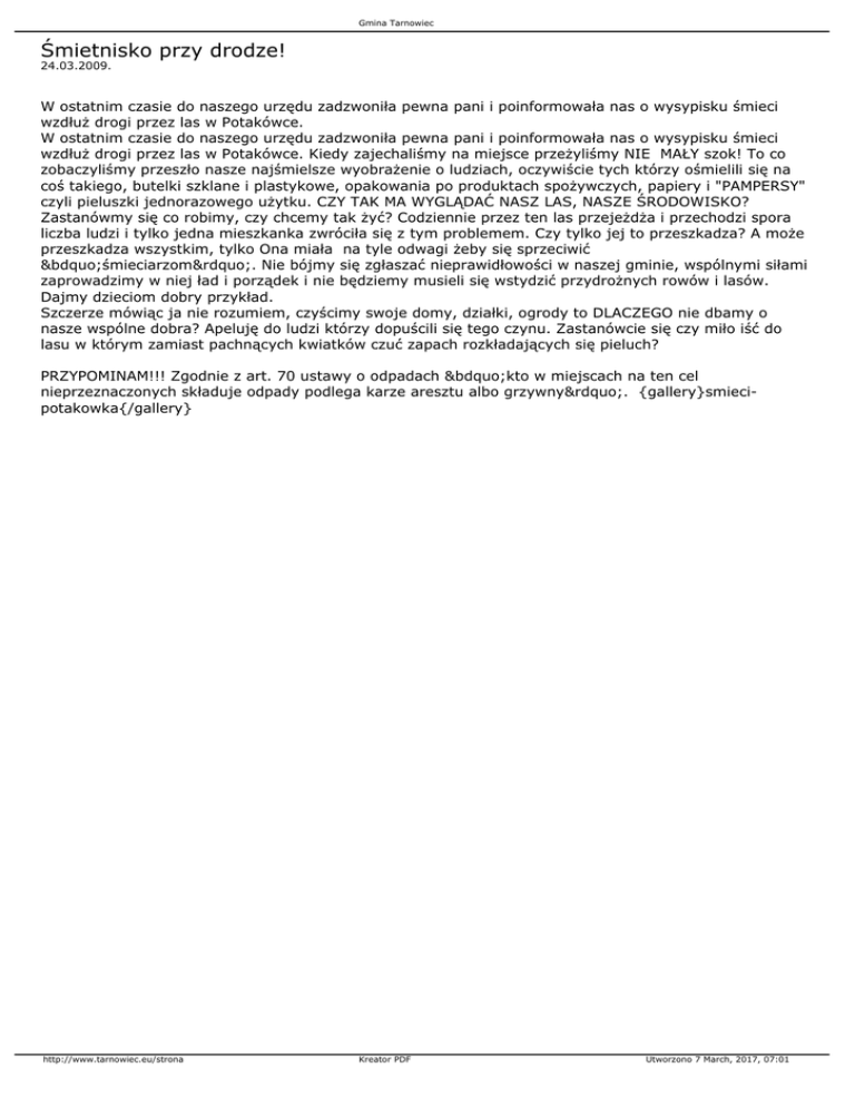 nieprzeznaczonych składuje odpady podlega karze aresztu albo grzywny”. {gallery}smiecipotakowka{/gallery}