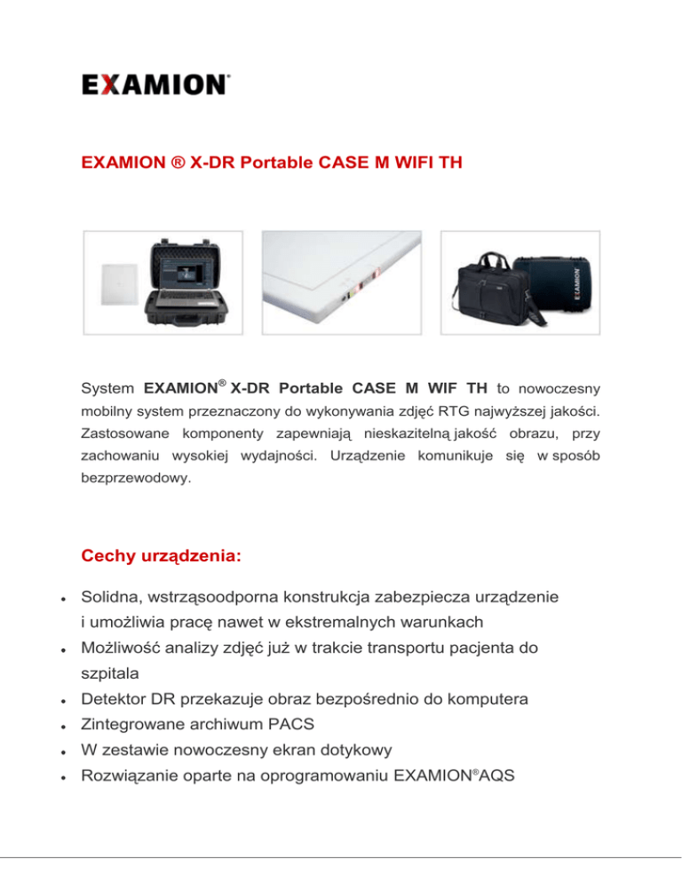EXAMION ® X-DR Portable CASE M WIFI TH Cechy urządzenia: