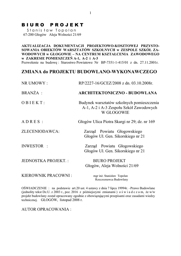 ZMIANA do PROJEKTU BUDOWLANO