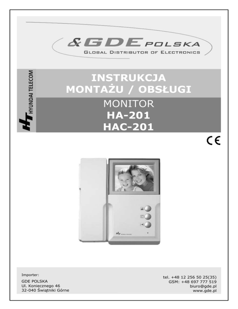 INSTRUKCJA MONTAśU / OBSŁUGI MONITOR HA-201 HAC-201