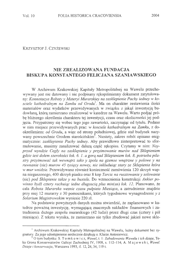 lewskiego na Wawelu, prowadzonej pod patronatem Szaniawskiego?23 Na to py