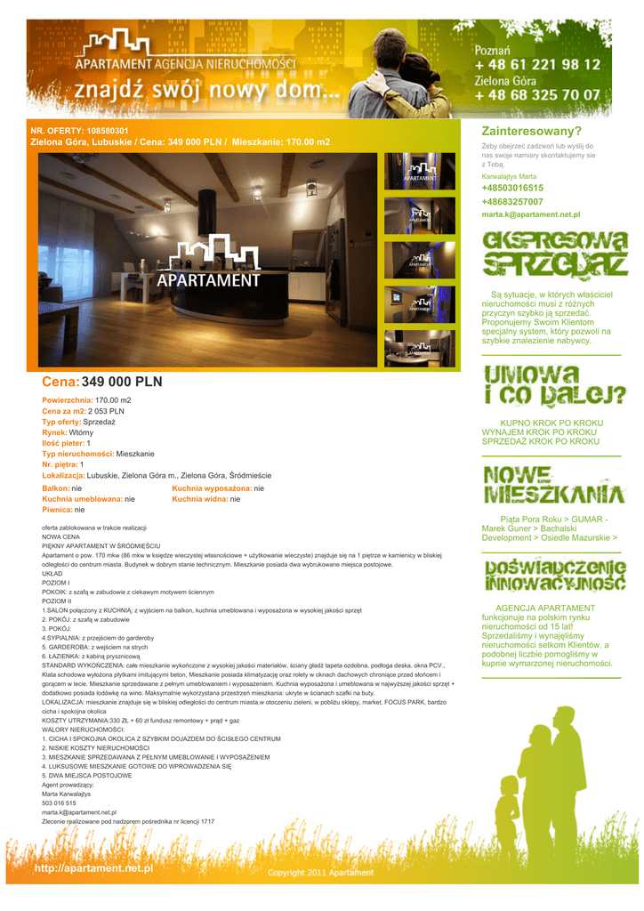 Cena:349 000 PLN - Nieruchomości Zielona Góra