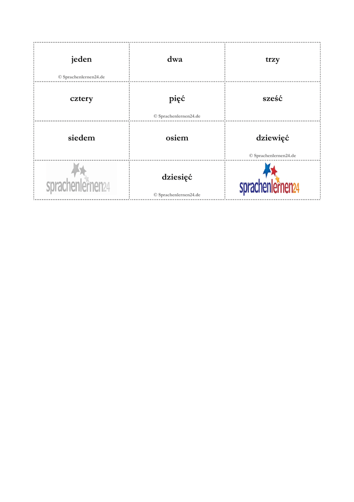 jeden dwa trzy pięć sześć © Sprachenlernen24.de cztery © Sprachenlernen24.de siedem osiem dziewięć © Sprachenlernen24.de dziesięć © Sprachenlernen24.de