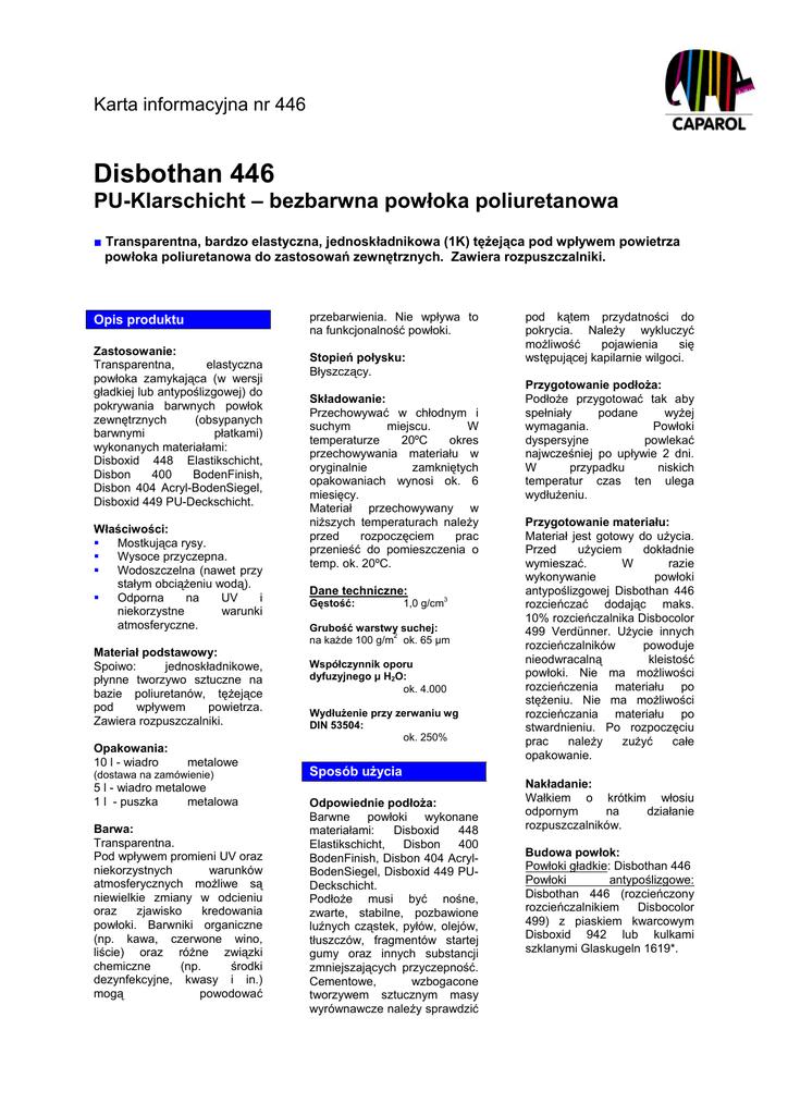 Caparol Disbothan 446 PU-Klarschicht - Kupujesz