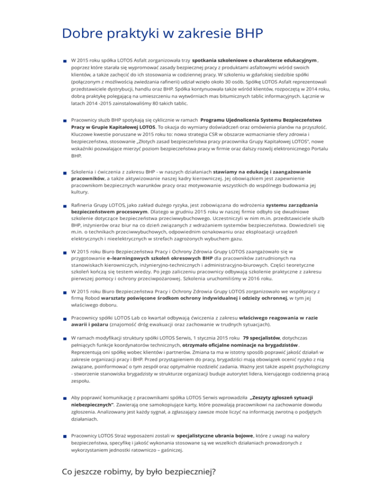 LOTOS Raport 2015 | Dobre praktyki w zakresie BHP