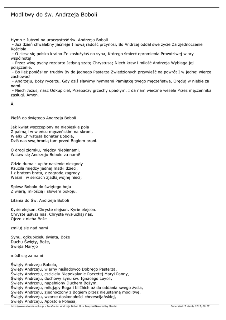 Modlitwy do św. Andrzeja Boboli - Parafia św. Andrzeja Boboli – w