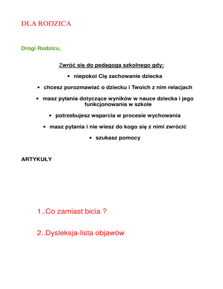 DLA RODZICA 1..Co zamiast bicia ? 2..Dysleksja
