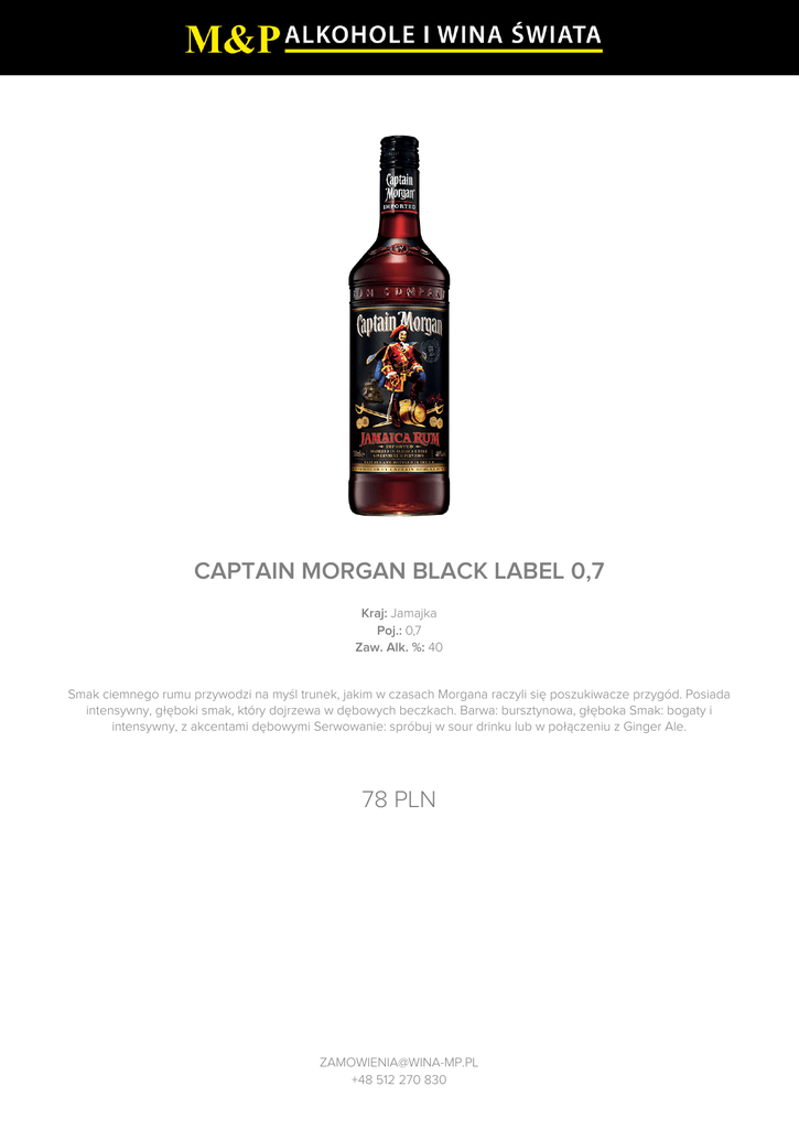 CAPTAIN MORGAN BLACK LABEL 0,7 78 PLN