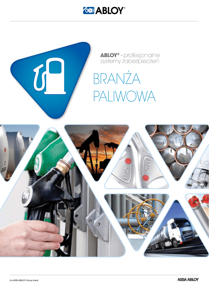BRANŻA paliwowa An ASSA ABLOY Group brand BEZPIECZEŃSTWO W KAŻDYM ŚRODOWISKU Świat stoi w obliczu coraz większych zagrożeń dla bezpieczeństwa we wszystkich sektorach rynku. Potrzeby związane z bezpieczeństwem są różne w różnych organizacjach, w zależności od ich wielkości i funkcji. Konieczność zastosowania systemu rozwiązań zapewniających wysokie bezpieczeństwo jest jednak uniwersalna. Coraz większa liczba obiektów, instytucji publicznych, przedsiębiorstw przemysłowych i firm opiera się na możliwości świadczenia usług przez 24 godziny na dobę, 7 dni w tygodniu. Każda przerwa czy zakłócenie ich działalności może stanowić poważnie zagrożenie dla bezpieczeństwa, spowodować utratę zysków, zagrozić zdrowiu ludzi i zachwiać reputacją firmy czy organizacji. Dlatego też konieczność zastosowania zamków i kluczy o wysokim poziomie bezpieczeństwa jest obecnie podstawowym wymogiem praktycznie w każdej branży. Bezpieczeństwo ma zasadnicze znaczenie dla naszej jakości życia, dlatego też solidne zabezpieczenie jest tak istotne. Na całym świecie klienci wybierają zamki i cylindry ABLOY® z uwagi na możliwość ich zastosowania w lokalizacjach najbardziej narażonych na niekorzystne warunki klimatyczne zarówno na lądzie, jak i na morzu. Produkty ABLOY® są szeroko stosowane w miejscach o wysokim ryzyku, do zabezpieczania dóbr wysokiej wartości, jak również w obiektach infrastruktury krytycznej, czy przez instytucje rządowe i obronne, które wymagają zabezpieczeń najwyższej klasy. Zastosowanie nieodpowiednich środków zabezpieczeń może mieć katastrofalne skutki dla bezpieczeństwa ludzi, może także spowodować zanieczyszczenie gleby i wód gruntowych. ZABEZPIECZENIE ŁAŃCUCHA DOSTAW Specyfika branży paliwowej wymaga zabezpieczeń na najwyższym poziomie Bezpieczeństwo w całej branży paliwowej, poczynając od miejsca wydobycia surowca, a kończąc na stacji benzynowej, zawsze było i jest priorytetem. Realizowane codziennie działania na wielką skalę muszą odbywać się bez zakłóceń, niezależnie od okoliczności. Cała światowa gospodarka uzależniona jest od ropy naftowej i gazu. Bezpieczeństwo tych surowców należy zagwarantować poprzez zastosowanie najtrwalszych produktów najwyższej jakości. Wypadki przy dostawach i rozładunku nieodpowiedniego rodzaju paliwa na stacji mogą być szkodliwe dla firmy, nadwyrężyć jej dobre imię, a także spowodować znaczne straty. Wypadki będące wynikiem błędu człowieka można zminimalizować poprzez zastosowanie procedur bezpieczeństwa. Niezwykle ważną rolę odgrywa wybór systemu zamknięć, który umożliwia zarządzanie kluczami i monitorowanie ich użytkowania. Kontrola dostępu do obiektu, w jego obszarze i poza nim, czy wyznaczenie obszaru o znaczeniu krytycznym pomaga zapobiegać wszelkiego rodzaju czynom przestępczym. EKSPLORACJA I ODWIERTY W miarę jak działania eksploracyjne i wiercenia realizowane są w coraz bardziej oddalonych i niebezpiecznych miejscach, rośnie potrzeba ciągłego zapewnienia bezpieczeństwa. Dostęp personelu musi być ściśle kontrolowany, aby zapewnić bezpieczeństwo, pozwalając jednocześnie na swobodę ruchu zarówno pracownikom firmy, jak i wynajętym podwykonawcom. RAFINERIA Rafinerie mogą być celem aktów terrorystycznych bądź sabotażu, dlatego też wymagają maksymalnych zabezpieczeń, które jednocześnie umożliwiają wykonywanie codziennych operacji i konserwację. Ważne jest zapobieganie możliwości dostępu dla osób nieupoważnionych. SKŁADOWANIE I TRANSPORT Przetransportowanie ropy z miejsca wydobycia do rafinerii, a następnie na stację paliwową wymaga funkcjonowania kompleksowego systemu transportu i składowania. Niebezpieczeństwo ataku na samochody ciężarowe i składy jest wysokie, dlatego też pojazdy i miejsca składowania muszą być chronione przed wszelkiego rodzaju atakami, co pozwoli uniknąć szkód czy zakłóceń w łańcuchu dostaw. Ogromne znaczenie ma ochrona towaru i sprzętu. DYSTRYBUCJA I USŁUGI Korzystanie z dystrybutorów na stacjach musi być kontrolowane i odpowiednio zabezpieczone. Konsekwencje zastosowania nieodpowiednich środków bezpieczeństwa mogą prowadzić do utraty zdrowia klientów i pracowników, znaczne straty finansowe, poważnego zanieczyszczenia środowiska oraz może wpłynąć negatywnie na działalność firmy. KONTROLA UPRAWNIONEGO DOSTĘPU ROZWIĄZANIA ZAPOBIEGAJĄCE zanieczyszczeniom środowiska ZAPOBIEGANIE ZNACZNYM STRATOM FINANSOWYM OCHRONA PRZED FAŁSZERSTWEM SPEŁNIENIE RÓŻNYCH STANDARDÓW KOMPLEKSOWE ROZWIĄZANIA zabezpieczeń Siłą napędową wszystkich części składowych ABLOY® jest zaangażowanie i możliwość zrozumienia wymagań naszych klientów dotyczących bezpieczeństwa, sprostania im oraz wdrożenie kompleksowych rozwiązań. Na przestrzeni wielu lat wprowadzano nowe standardy zabezpieczeń, które wymusiły konieczność stosowania rozwiązań zapewniających najwyższą ochronę przed atakiem fizycznym, odporność na korozję chemiczną i ekstremalne warunki pogodowe. Produkty ABLOY® zostały przetestowane pod kątem zgodności z szeregiem norm międzynarodowych. Nasze produkty nie tylko spełniają, ale wręcz przewyższają te wymogi. ABLOY® zapewnia rozwiązania globalne, oferując szereg produktów w odpowiedzi na potrzeby i wymagania klientów. TECHNOLOGIA ZAMKÓW ELEKTROMECHANICZNYCH ABLOY® Oy dysponuje szerokim zakresem zamków elektrycznych o najwyższej jakości, charakteryzujących się niedoścignioną funkcjonalnością i wytrzymałością, dzięki czemu spełniają one warunki niezbędne do funkcjonowania w środowisku wymagającym wysokiego poziomu bezpieczeństwa. Asortyment zamków elektrycznych Abloy obejmuje zarówno zamki elektromotoryczne z ryglem cofanym przez silnik, jak również zamki typu solenoid z kontrolą klamki. ABLOY® PROTEC 2 CLIQ - zdalnie programowany system zamknięć System PROTE