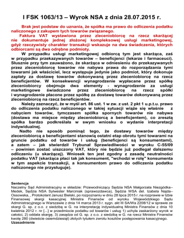 I FSK 1063/13 – Wyrok NSA z dnia 28.07.2015 r.