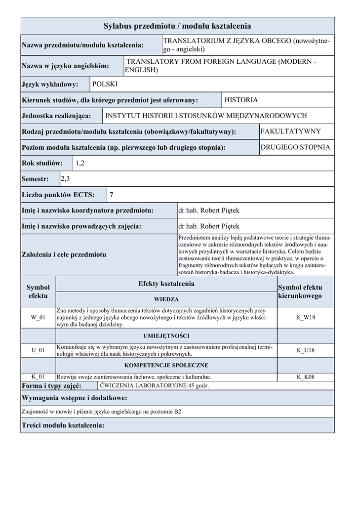 Translatorium z języka obcego - Instytut Historii i Stosunków