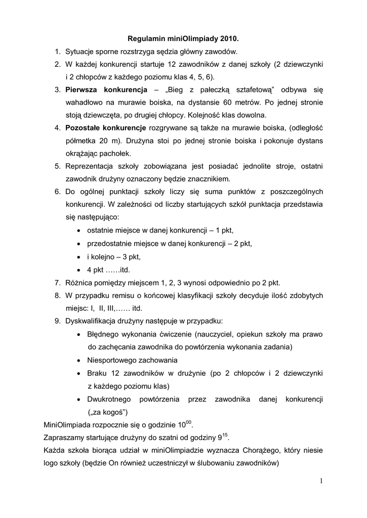 1 Regulamin miniOlimpiady 2010. 1. Sytuacje sporne