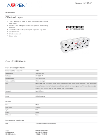 OFFICE PRODUCTS made of white, wood-free and dust-free offset paper;; provides a long lasting and