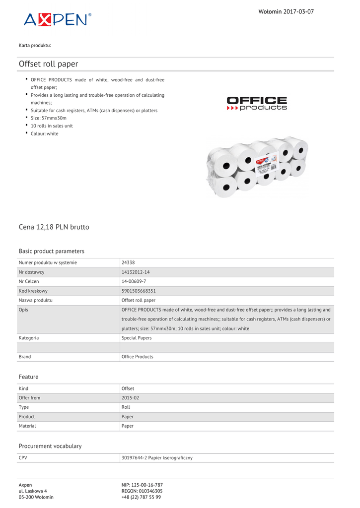 OFFICE PRODUCTS made of white, wood-free and dust-free