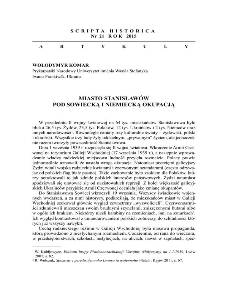 MIASTO STANISŁAWÓW POD SOWIECKĄ I NIEMIECKĄ OKUPACJĄ