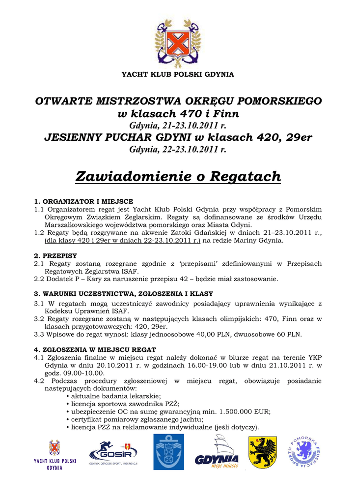 Zawiadomienie o Regatach - Yacht Klub Polski Gdynia