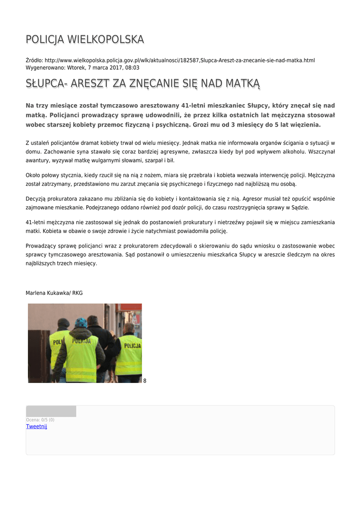 policja wielkopolska słupca- areszt za znęcanie się nad matką