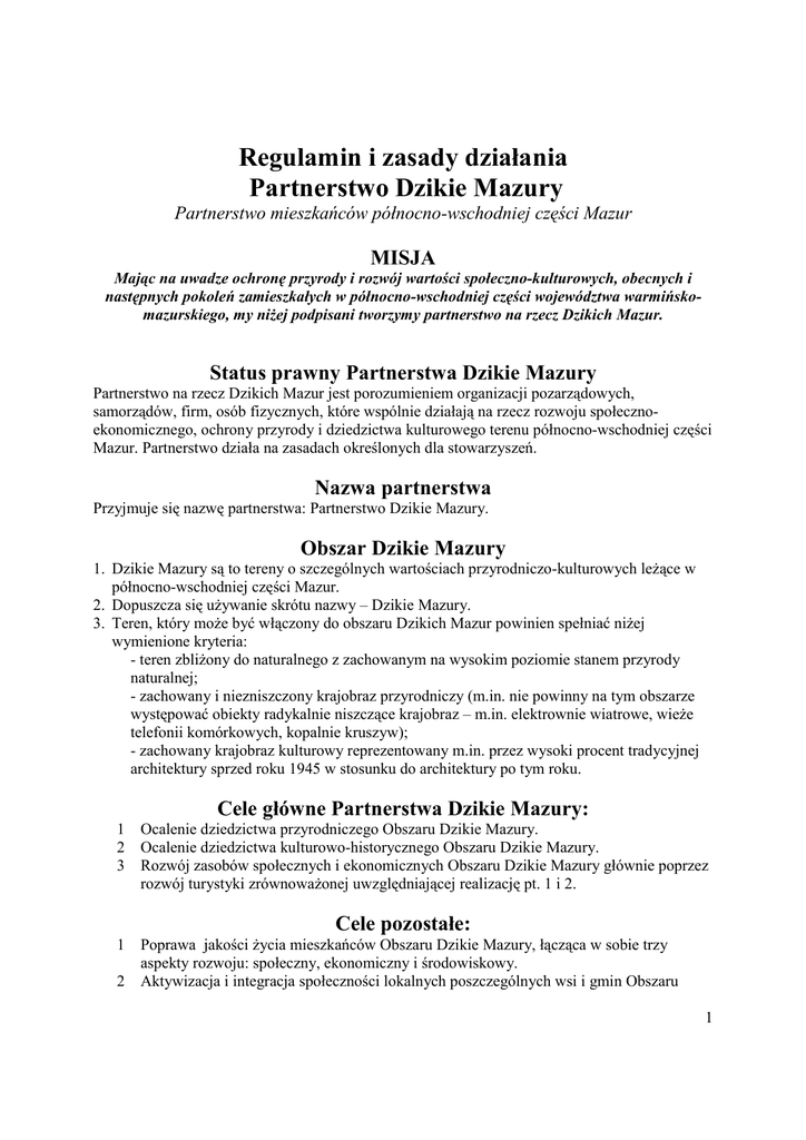 Regulamin i zasady działania Partnerstwa Dzikie Mazury