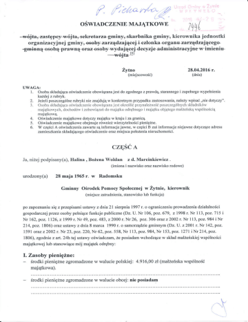 osoba składająca oświadcz€nie obowiązanajest do zgodnego z prawdą starannego izupełnego wypełnienia