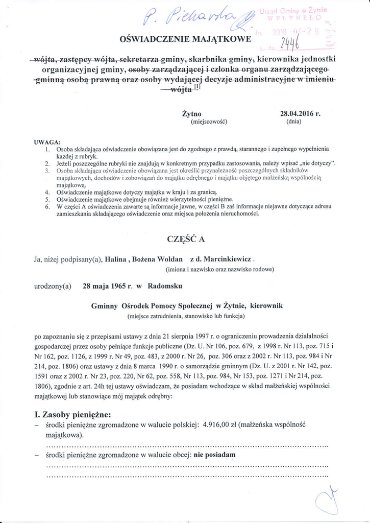 oświadczenie majątkow€ obejmuje również wierzytelności pieniężn€w części A oświadczenia zawarte są informacjejawne, \ł części B zaśńformacje niejawne dotyczące adresu