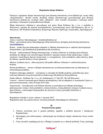 Regulamin sklepu Kidimax Niniejszy regulamin sklepu