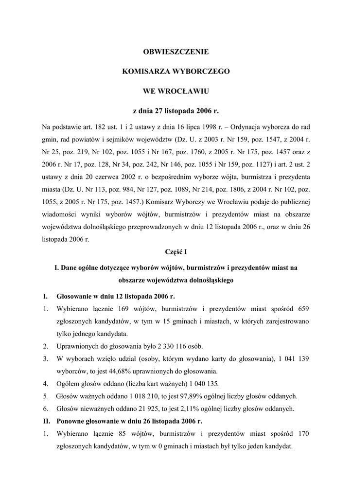 OBWIESZCZENIE KOMISARZA WYBORCZEGO WE WROCŁAWIU z