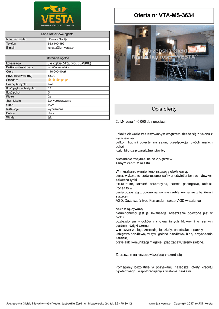 Oferta nr VTA-MS-3634 - Jastrzębska Giełda Nieruchomości Vesta