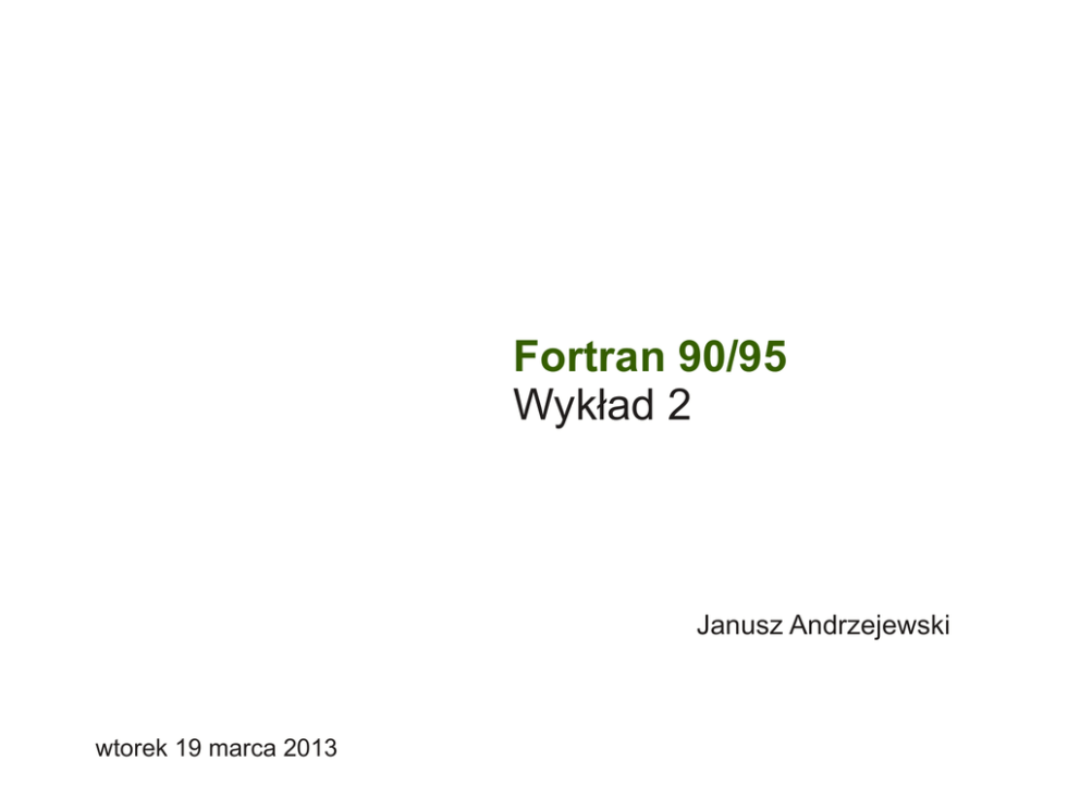 Fortran 90/95 Wykład 2 Janusz Andrzejewski wtorek 19 marca 2013 Plan ● Schemat blokowy ● Główny segment ● Podprogramy zewnętrzne ● ● – procedury – funkcje Moduły – procedury – funkcje Podprogramy wewnętrzne – Procedury – Funkcje 2 Składniki programu Moduł Główny segment Podprogramy wewnętrzne Podprogramy w module Podprogram zewnętrzny Podprogramy wewnętrzne Podprogramy wewnętrzne 3 Składniki programu ● ● ● ● ● ● W programie musi być tylko jeden segment główny Ilość podprogramów zewnętrznych, ich kolejność występowania w pliku lub plikach jest dowolna Nazwa podprogramu zewnętrznego jest globalna tzn. jest widziana z każdego miejsca w programie i dana nazwa może odnosić się tylko do jednej procedury zewnętrznej Powyższe stwierdzenie nie stosuje się do procedur w modułach Procedura zewnętrzna oraz moduły nie mogą być dzielone pomiędzy dwa lub więcej plików Nazwy modułów muszą różnić się pomiędzy sobą 4 Segment główny [PROGRAM nazwa_programu] [czesc deklaracyjna] [czesc wykonawcza] [CONTAINS] [segmenty wewnetrzne] END [PROGRAM [nazwa_programu]] Najprostszy program: END Uwaga: Powyższy program nic nie robi !!! Przykład: PROGRAM Hallo write(*,*) „Hallo world' END PROGRAM Hallo 5 Schemat podprogramów zewnętrznych subroutine-nagłówek function-nagłówek [czesc deklaracyjna] [czesc deklaracyjna] [czesc wykonawcza] [czesc wykonawcza] [CONTAINS] [segmenty wewnetrzne] [CONTAINS] [segmenty wewnetrzne] END [SUBROUTINE [nazwa_pro]] END [FUNCTION [nazwa_fun]] Gdzie, nagłówek ma postać Gdzie, nagłówek ma postać: [przedrostek] SUBROUTINE [([lista argumentów formalnych])] [przedrostek] [typ_wyniku] FUNCTION ([lista argumentow formalych] ) [RESULT (zmienna)] - przy czym może wystąpić albo typ_wyniku albo RESULT Na temat przedrostków – któryś z kolejnych wykładów !!! 6 Schemat segmentów cd. ● ● ● Część deklaracyjna – fragment segmentu (głównego, procedury lub funkcji) w której występuje deklaracja użycia modułów, definicja nowych typów danych oraz deklaracja zmiennych oraz argumentów formalnych Część wykonawcza – zasadniczy fragment segmentu w którym następuje proces obliczeniowy Segment wewnętrzny – są to funkcje lub procedury które są dostępne tylko z tego segmentu (nie można ich wywołać z innych segmentów zewnętrznych). W segmencie wewnętrznym nie można definiować innych segmentów wewnętrznych, można wywoływać natomiast inne segmenty wewnętrzne zdefiniowane w tym samym segmencie zewnętrznym 7 Procedura czy funkcja ? ● ● ● ● ● Procedura i funkcja są do siebie bardzo podobne Funkcja musi zwrócić jakiś wynik, w związku z tym musi wystąpić odpowiednia instrukcja przypisania Funkcje powinniśmy stosować wtedy, gdy nie ma potrzeby zmiany argumentów oraz gdy wynik obliczeń możemy przekazać jako wartość funkcji Funkcje nie powinny powodować efektów ubocznych np. zmiany wartości zmiennej globalnej Procedurę powinniśmy stosować wtedy gdy chcemy wykonać operację które powodują efekty uboczne 8 Przykład SUBROUTINE testProc print*,'Test procedury 1' END SUBROUTINE SUBROUTINE testProc2() print*,'Test procedury 2' END FUNCTION fun1() RESULT (wyn) INTEGER :: wyn wyn=1; print*,'Test fun 1' END FUNCTION fun1 INTEGER FUNCTION fun2() PROGRAM glowny INTEGER :: i ! wywolanie procedury CALL testProc() CALL testProc2 ! tak tez mozna ! wywolanie funkcji i=fun1() ! i=fun1 ! nie można tak wywolac funkcji i=fun2() END PROGRAM glowny fun2=2; print*,'Test fun 2' END FUNCTION fun2 9 Moduły MODULE nazwa_modulu [część deklaracyjna] [CONTAINS Podprogramy ] PROGRAM uzycieModulu USE zmienne izm1=2; rzm1=0.2 izm2=izm1/rzm1 END [MODULE [nazwa_modulu]] rzm2=izm1-rzm1 Przykład: print*,'Calkowite ',izm1, izm2 MODULE zmienne Print*,'Rzeczywiste ',rzm1, rzm2 INTEGER :: izm1, izm2 END PROGRAM uzycieModulu REAL :: rzm1, rzm2 END MODULE zmienne 10 Moduł ● Moduł pozwala na: ● ● ● ● ● ● ● Umieszczenie zmiennych (danych) które mogą być dostępne w dowolnym miejscu programu (zmienne globalne) Umieszczenie deklaracji własnych typów danych i związanych z nim operacji Umieszczenie „opisu argumentów do podprogramów” w celu sprawdzania poprawności wywołania podprogramów Grupowanie funkcji i procedur które są „ideologicznie” powiązane ze sobą Korzystanie z innych modułów NIE wolno w sposób rekurencyjny bezpośredni czy pośredni korzystać z tego samego modułu tzn: moduł A korzysta z B, to B nie może korzystać zA Nie powinno korzystać się z podprogramów zewnętrznych 11 Moduł – przykład użyteczny MODULE RodzajeLiczb INTEGER, PARAMETER :: & ! Stale nazwane dla liczb calkowitych o dlugosci 4, 2 i 1 bajta i4b=SELECTED_INT_KIND(9), & i2b=SELECTED_INT_KIND(4), & i1b=SELECTED_INT_KIND(2), & ! stale nazwane dla liczb rzeczywistych pojedynczych i podwojnej precyzji sp=KIND(1.0), & dp=SELECTED_REAL_KIND(2*PECISSION(1.0_sp)) END MODULE RodzajeLiczb 12 Moduł - użycie PROGRAM test USE RodzajeLiczb IMPLICIT NONE INTEGER(i1b) :: ai1b INTEGER(KIND=i4b) :: ai4b REAL(sp) :: rSP REAL(KIND=dp) :: rDP, rNewDP COMPLEX(KIND=dp) :: compDP ai1b=1_i1b ai4b=2*3_i4b rSP=1.0 rSP=rSP*4.56_sp rDP=2.0D0 rNewDP=3.145566_dp compDP=(2.0_dp, 3.0_dp) END Program test 13 Jawny interface MODULE nic1 IMPLICIT NONE CONTAINS REAL FUNCTION fun(a) REAL, INTENT(IN) :: a fun=a*34.5 END FUNCTION fun SUBROUTINE WyswWartFun(x, funk) REAL, INTENT(IN) :: x INTERFACE REAL FUNCTION funk(x) REAL, INTENT(IN) :: x END FUNCTION funk END INTERFACE write(*,*)'Wart funkcji ',funk(x) PROGRAM test USE nic1 IMPLICIT NONE REAL :: x x=2.0 CALL WyswWartFun(x, fun) END PROGRAM test END SUBROUTINE END MODULE nic1 14 Jawny interface 2 MODULE nic2 USE RodzajeLiczb IMPLICIT NONE CONTAINS REAL(dp) FUNCTION fun(a) REAL(dp), INTENT(IN) :: a fun=a*34.5 END FUNCTION fun SUBROUTINE WyswWartFun(x, funk) REAL(dp), INTENT(IN) :: x INTERFACE FUNCTION funk(x) RESULT(wyn) USE RodzajeLi