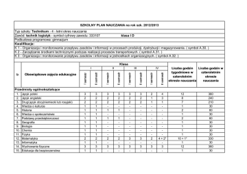 PLAN NAUCZANIA W ZAWODZIE TECHNIK LOGISTYK