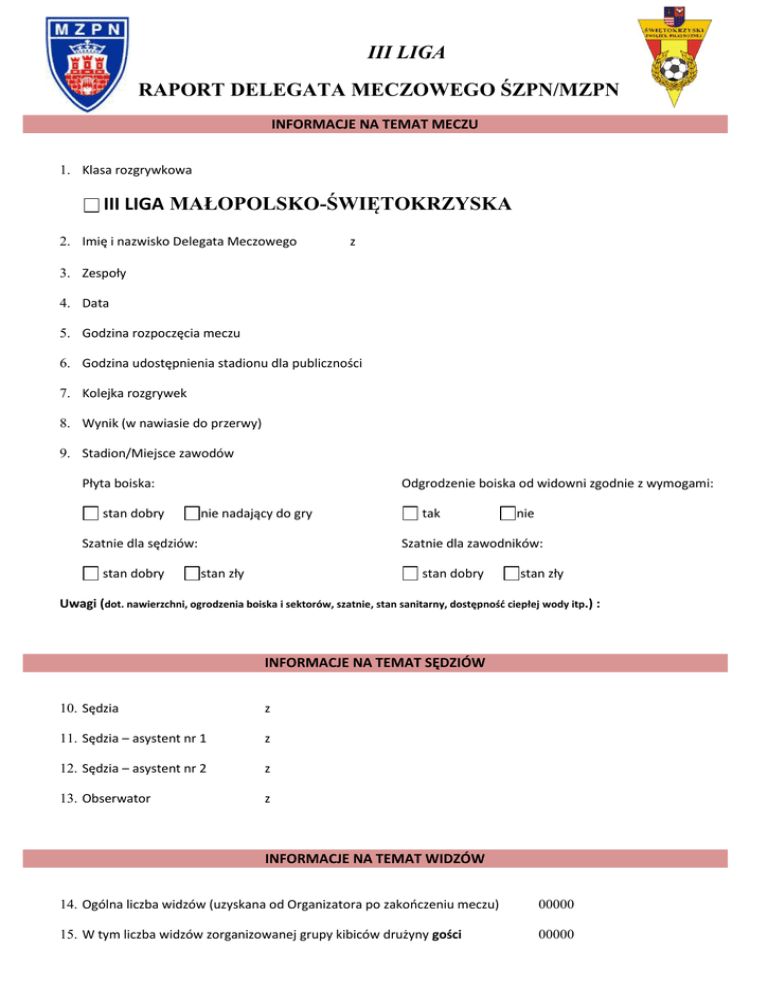 raport delegata meczowego mzpn - Świętokrzyski Związek Piłki