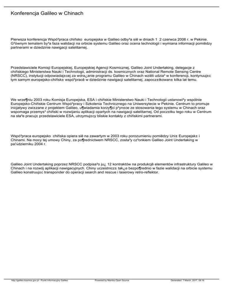 Konferencja Galileo w Chinach - Polski Punkt Informacyjny Galileo