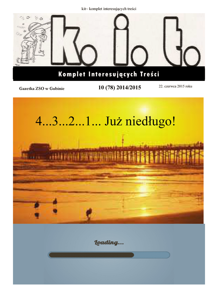 Drodzy Czytelnicy! Przed Wami ostatni w tym roku szkolnym numer gazetki. Korzystam więc z