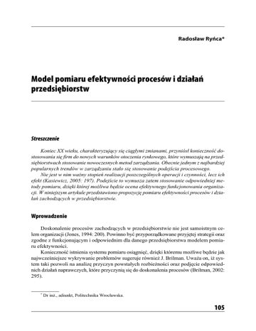 Mo del po mia ru efek tyw no ści pro ce sów i dzia łań przed się biorstw