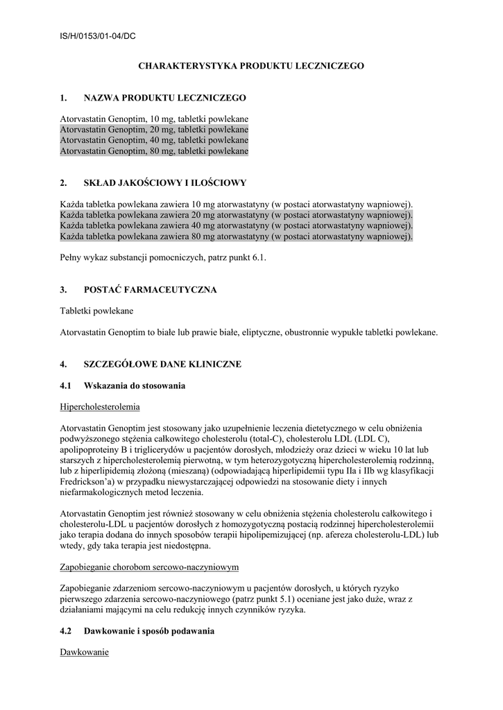 U większości pacjentów wystarcza dawka 10 mg produktu leczniczego Atorvastatin Genoptim raz na